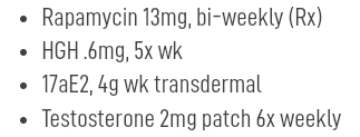 Gordo Posted June 1, 2023 Report Share Posted June 1, 2023 His recipes look pretty good: But I wonder about taking human growth hormone, testosterone and rapamycin: The HGH and T would certainly make most men feel good, but seems counter productive to slowing aging. Or has he cracked the code? I guess only time will tell. I remember when HGH was all the rage for longevity people then I thought it was pretty much debunked and mostly abandoned. I'm surprised he hasn't put cold exposure into his repertoire yet, you know it's coming 😂 Quote Link to comment Share on other sites More sharing options...